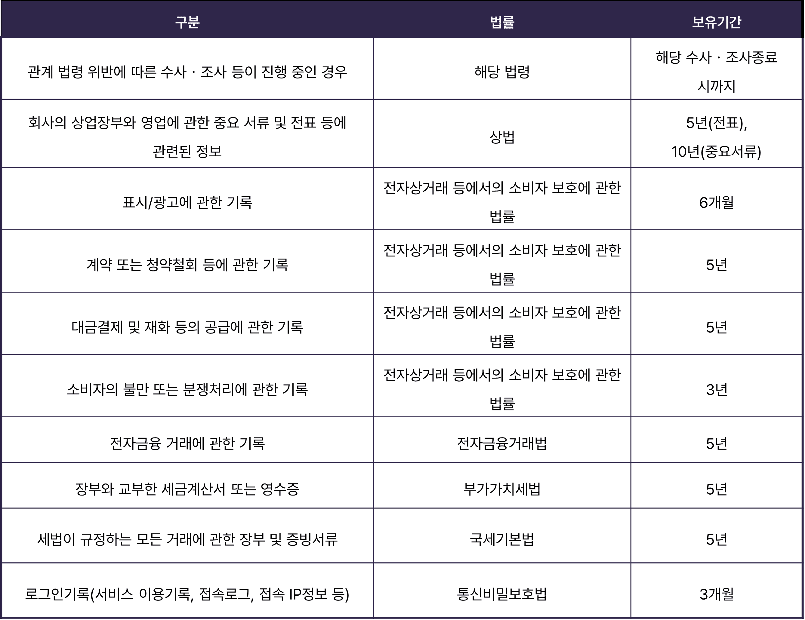 - 관계 법령에 의한 정보 보유