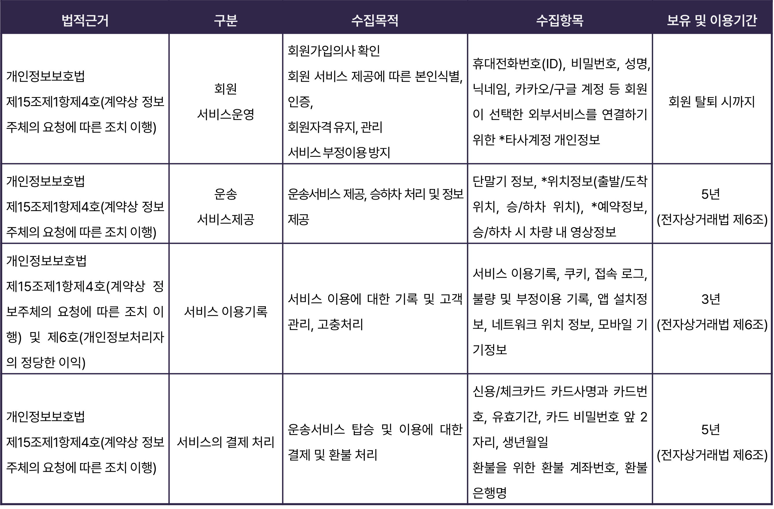 - 서비스 제공에 따른 결제, 콘텐츠 제공, 미수금 추심